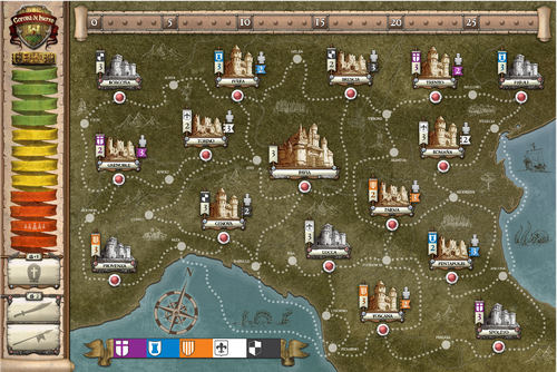 Cada jugador representa a un noble italiano en el siglo IX, que intentará aumentar su poder ante la muerte inminente del rey Carlos III. Para hacerlo, debe enviar emisarios a negociar con otros nobles, con el Papa y con los bárbaros, movilizar ejércitos, asediar castillos y ganar batallas. El jugador más poderoso en el momento de la coronación será el ganador del combate. De 3 a 5 jugadores.